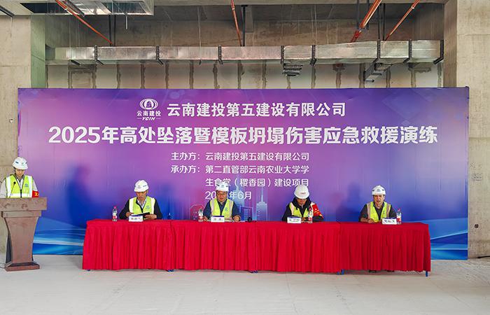 6月27日,公司在第二直管部負(fù)責(zé)施工的云南農(nóng)業(yè)大學(xué)學(xué)生食堂(稷香園)建設(shè)項(xiàng)目開展高處墜落暨模板坍塌傷害應(yīng)急救援演練,同步開展安全標(biāo)準(zhǔn)化工地觀摩交流活動。公司副總經(jīng)理匡浩出席活動并講話。