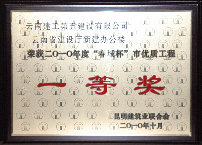 公司承建的云南省建設(shè)廳新建辦公樓榮獲2010年度“春城杯”市優(yōu)質(zhì)工程一等獎