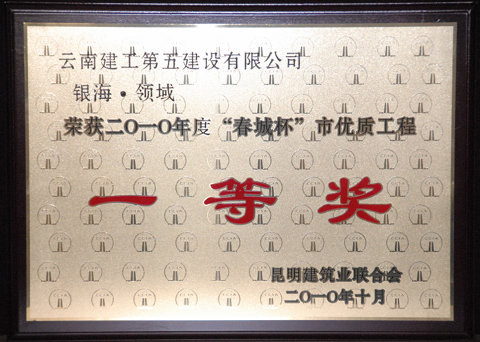 公司承建的銀海·領(lǐng)域榮獲2010年度“春城杯”市優(yōu)質(zhì)工程一等獎