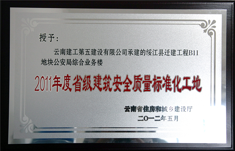 綏江項目部承建施工的綏江縣遷建工程B11地塊公安局綜合業(yè)務樓工程獲“2011年度省級建筑安全質(zhì)量標準化工地”稱號