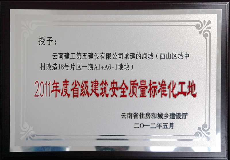 第五直管部承建施工的潤城(西山區(qū)城中村改造18號片區(qū)一期A1+A6-1地塊)工程獲“2011年度省級建筑安全質(zhì)量標準化工地”稱號