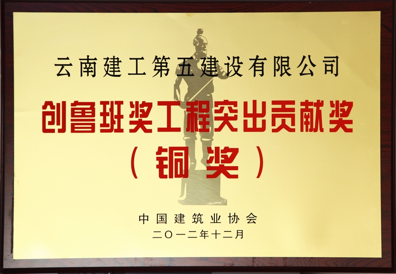 2012年12月公司榮獲中國建筑業(yè)協(xié)會頒發(fā)的創(chuàng)魯班獎工程突出貢獻獎(銅獎)。